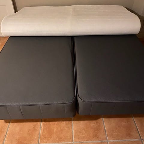 2x boxmadresser i 200x90 sælges samlet, med madras på 200x180, samt ben