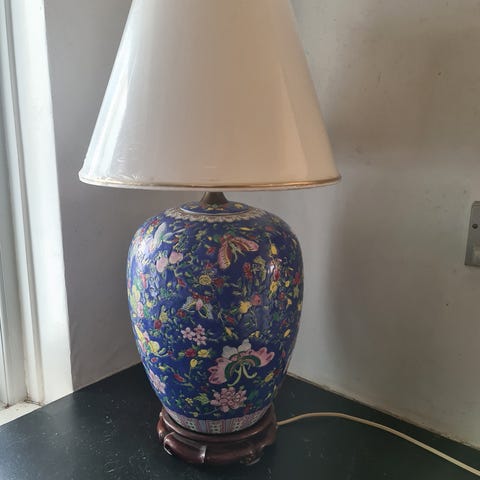 Stor gammel Kinesisk Bordlampe med skærm – 80 cm høj