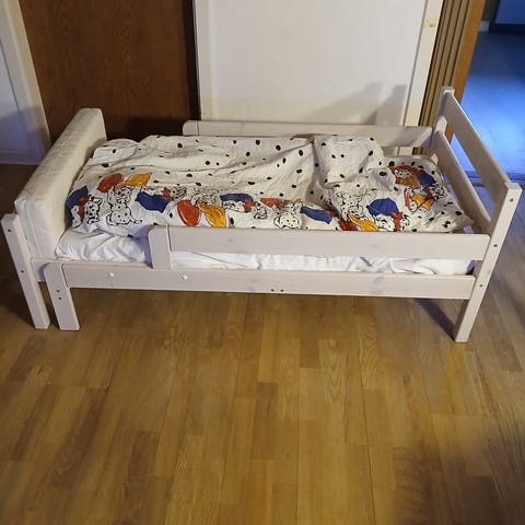 Børneseng sælges, inklusiv madras, lagen og vådliggerlagen