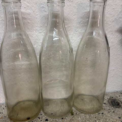 Gamle mælkeflasker i original metalramme