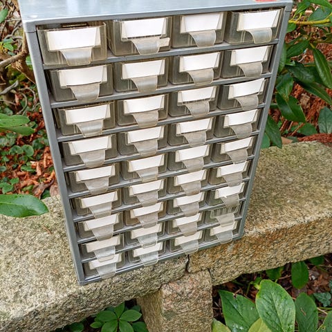 4 stk 15x30x33. 2 stk med 35 skuffer. 15x5x4. 2 stk med 25 skuffer,