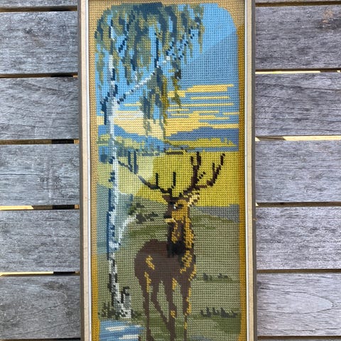 Fint broderi af katten Mindi i guldramme fra april 2005
