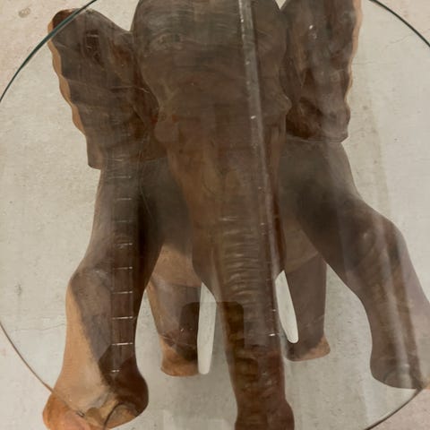 Sort elefantbord med udskæringer og hjørnetænder