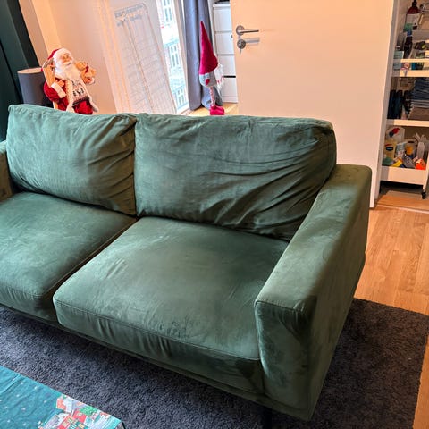 Grøn velour 3-personers sofa med puf