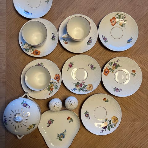 Bing & Grøndahl kaffestel bestående af 10 kopper og underkopper, sukkerskål og flødekande.