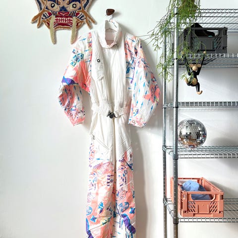 Beautiful unique vintage ski suit in great condition. Rare, never seen anywhere, this winter season you must have it! Made out of very comfortable, strong material. Zipped fastening, 3 outer pockets, and has super batwing sleeves, high collar, BELT, perfect both for skiing or for casual wear.