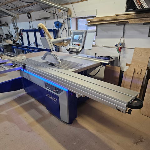 Martin formatsav komplet inkl. spånsuger, ekstra savklinger, bord og klodskasse. Alt fungerer fint og kan afprøves inden handel.