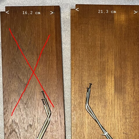 En hylde i teaktræs finér flot og i fin stand. De to andre kan medfølge for 50 kr, hvis det har en interesse, der er et lille mærke på den ene og den anden har fået fugt ringe fra urtepotte. Måske med lidt fint sandpapir og olie kan den blive flot igen.