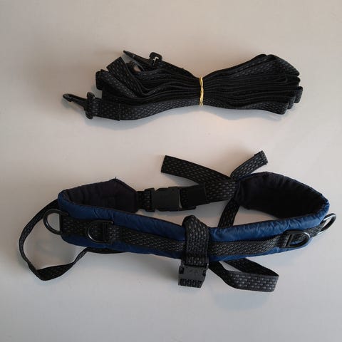 Har sådan nogle elastikker i remmen, så man undgår pludselige ryk.