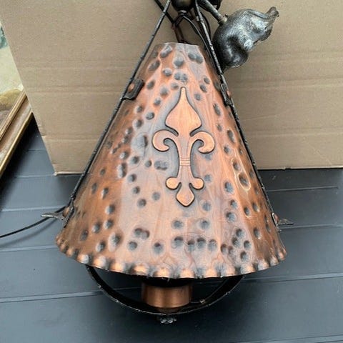 Sort loftlampe med kobberfarvet inderside