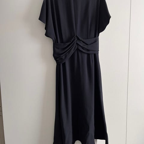 Hugo Boss Fest/cocktail kjole i sort farve, størrelse S. Fremstillet i polyester materiale. Kjolen har lange ærmer og bindebånd i taljen, hvilket giver mulighed for justering af pasformen. Fin og elegant. Stor i størrelsen.