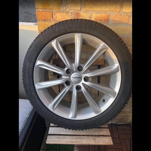 Continental dæk med fælge i størrelsen 205/50 R17 V XL. Dækkene er monteret på alufælge og i god stand. Passer til Audi A3 Prestige TFSI e PHEV