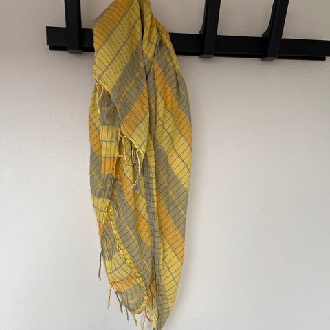 Sælger dette fine multifarvet tørklæde fra Pieces. Den er brugt, men er i rigtig fin stand. Den består af 100% akryl.
