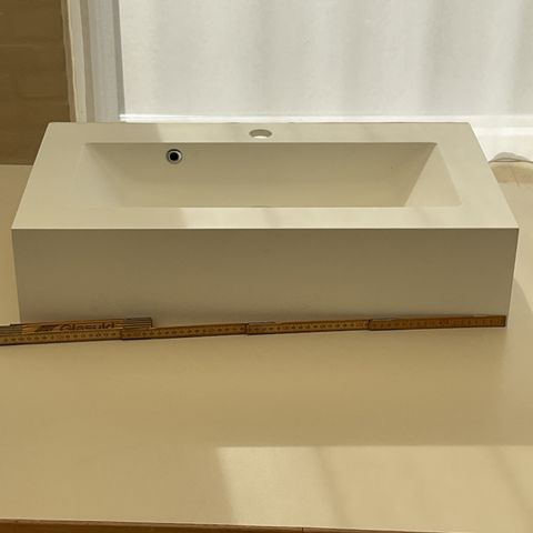 Vasken har to kummer og et enkelt, stilrent design, der passer godt til badeværelse, bryggers eller lignende.