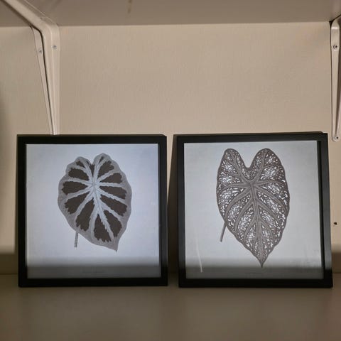 Billederne er kun pakket ud af æsken, men plexiglassene blev desværre ødelagt i det ene hjørne under leveringen - plexiglassene kan blot udskiftes.