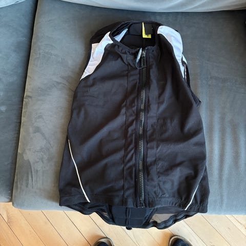 Everest rygskjold i blå og sort. Rygskjoldets længde måler 54 cm. Designet med lynlås foran og justerbare stropper for tilpasning. Materialet er åndbart og egnet til beskyttelse under ski eller andre fysiske aktiviteter.