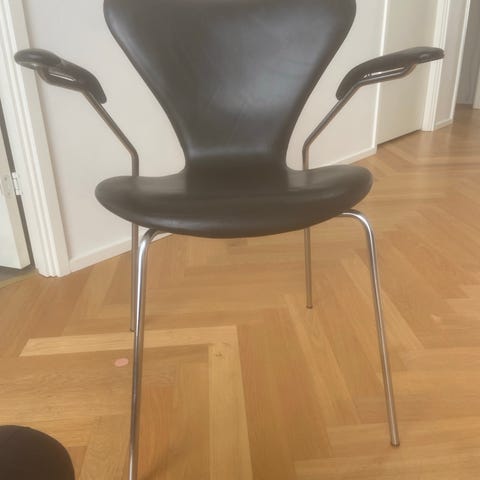 Fritz Hansen Arne Jacobsen stol i sort. Designet af Arne Jacobsen, denne stol har en sort finish og en formet sæde- og rygstøtte. Stolen har metalben og er egnet til brug i forskellige indendørs miljøer. Sort - Farvet Ask. Har 3 stk. sælges samlet. Ny pris: ca. kr. 6.200.