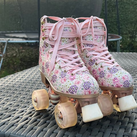 Vision Rulleskøjter i størrelse 35.5. farve pink. Designet til børn med justerbare snørebånd og rem for bedre pasform. Velegnet til udendørs brug og rulleskøjtning som sport og fritidsaktivitet.