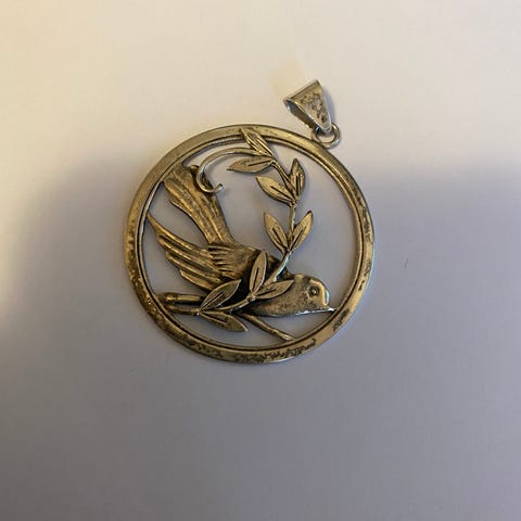 Vedhæng, sølv, 10 øre i forgyldt sølv, Christian IX fra 1891. Lavet om til vedhæng, sjældent. Mål: Ø 1,5 cm. Til salg 330 kr. Vi sender gerne forsvarligt pakket sporbar forsendelse.
