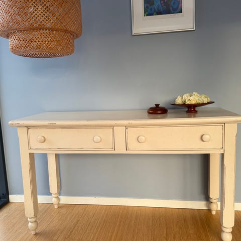 Antikt konsolbord / entrebord / makeupbord. Bordet er et gammelt bord som er skåret over på midten så det kan stå op ad væggen.