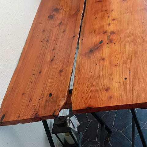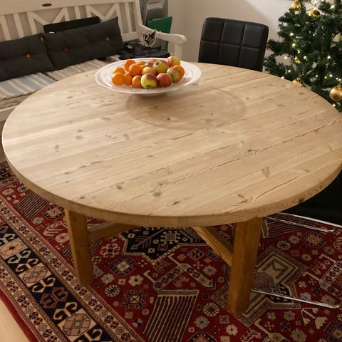 Træet har fået kirsebærolie og har derfor en dyb og flot farve. Bordet har få brugsspor, ingen større skrammer.