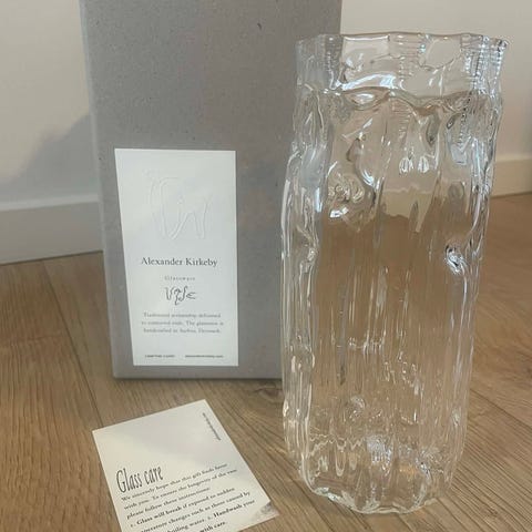 Alexander Kirkeby vase i glas med en unik, kubisk form.