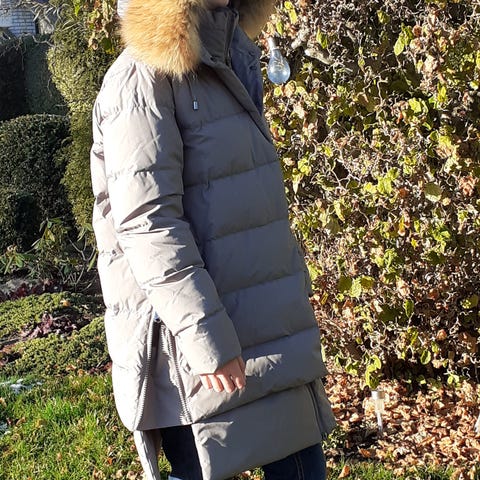 Sælger min dunjakke med ækte dun i, og krave af rævepæls. Nesten ikke brukt og mega behagelig at ha på!