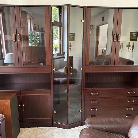 Stor reol i lyst træ måske birke finer. Den kan skilles ad.