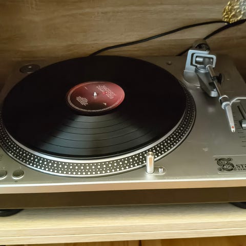 Sony pladespiller med ny nål, forstærker fra Hartman Kardon og Micropods fra Scandyna.