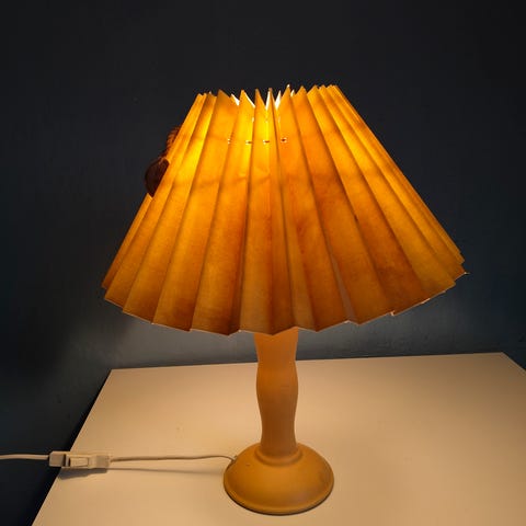 Grøn keramik med plisseret skærm i flot stand.