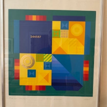 Blandede medier, Karl Åge Riget, b: 66 h: 69, Original værk på aluminiumsplade, metalramme med glas. Helt nyt glas i rammen.