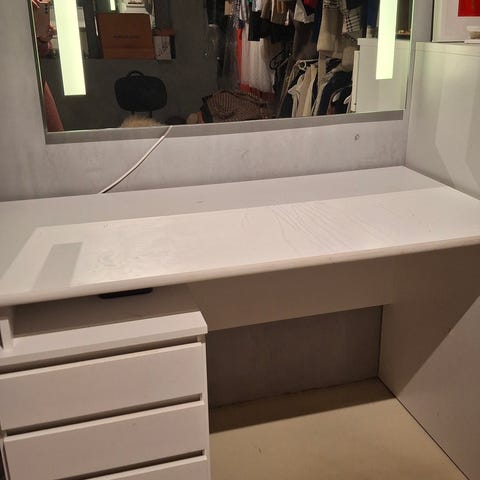 Hvidt højglans skrivebord / sminkebord fra IKEA, BESTÅ BURS, udgået model. 180x40x75
