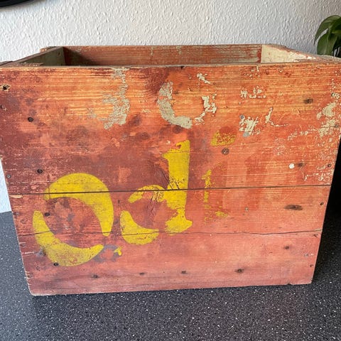 Wiibroe trækasse i træ med grøn farve og røde detaljer. Kassen har håndtag på siderne for nem transport. Velegnet til opbevaring eller transportformål.