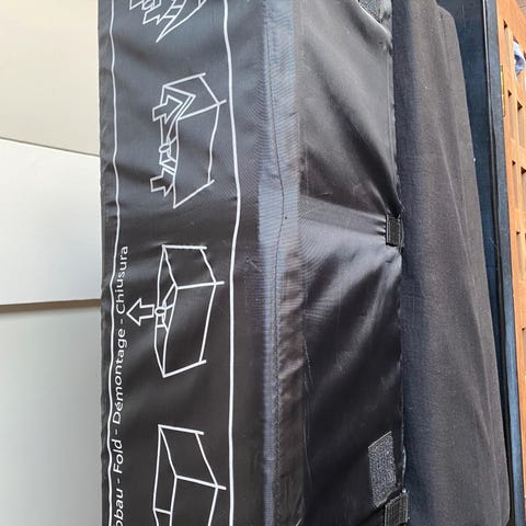 Den er brugt og der mangler en møtræk til at samle den, men den kan stadig samles, så det er sikkert og stabilt.
