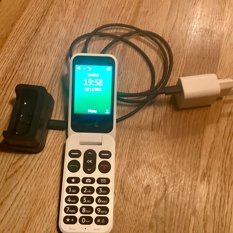DORO 2881 klaptelefon. Købt Elgiganten 30/7-25. Kvittering haves. Kun åbnet.