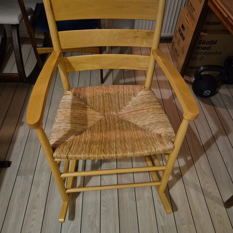 En dejlig gyngestol med høj ryg, så hovedet ikke falder af når man falder i søvn i stolen.