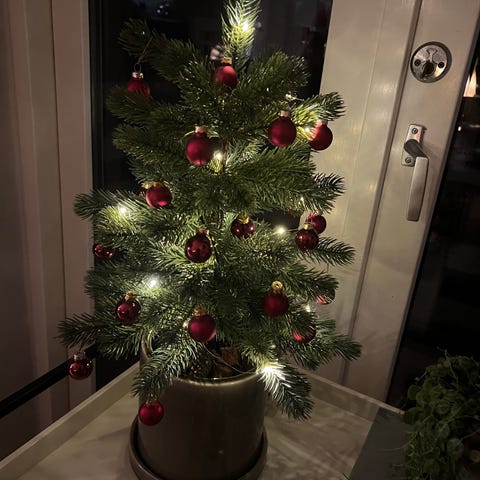 Enkelt, sort juletre med batteri. Fungerer som det skal, må bare byttes batterier