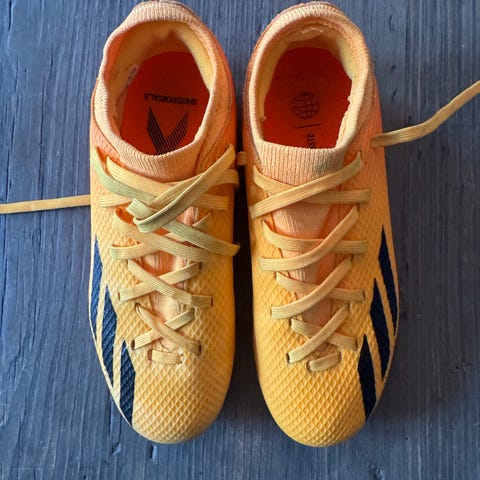 Adidas X Speedportal.4 IN fodboldstøvler i blå og pink farver. Designet til indendørs brug med en slidstærk sål. Egnet til børn og unge.