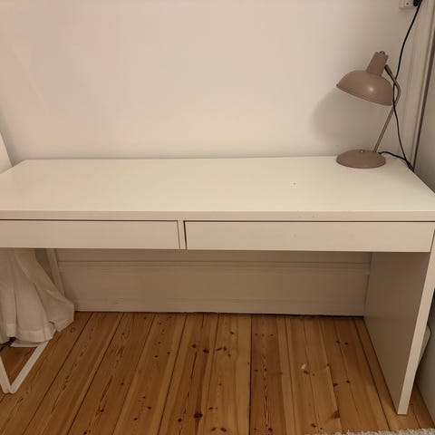 Skrivebord fra IKEA med to gode skuffer og hul til ledning i højre side. Ingen hakker i bordpladen, fremstår meget fint.