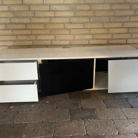Flot hi-fi / TV møbel fra hifiklubben. Hvid og hvide stof fronter. Mål er længde 102 cm, højde 36 cm og dybde på 40 cm