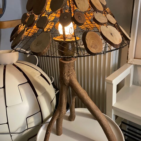 Lampeskærm til bordlampe. Håndlavet i møbelstof, størrelsen er 20 cm i diameter og 19 cm høj. Ubrugt.