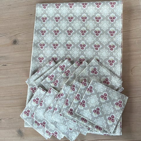 Borddug med servietter, Ukendt, Flot dug i gyldne nuancer med gule ensfarvede mundservietter