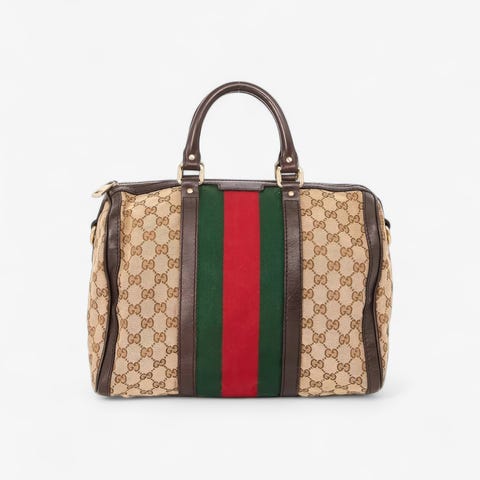 The top zipper gives acces to a pricatial Gucci lined interior.