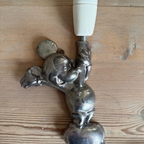 Renoveret Anders And lampe fra 1960erne. Den er støbt i tin og nyrenoveret med porcelænsfatning og stofledning med afbryder. Fåes også i Mickey Mouse udgave. Sendes efter aftale.