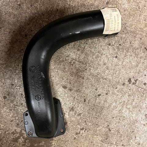 Nyt Rustfrit udstødnings ført op på højer side af motor set for fra.