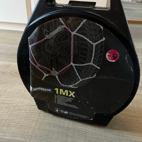Kassen er uåbnet og stadig plomberet med strips – kæderne har derfor aldrig været ude af kassen og er 100% som nye. Perfekt til skiferien.