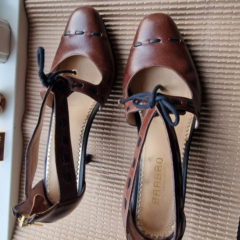 Meget velholdte Barbro sko. De er i sort skind med ruskind foran og på bagkappen og størrelse 36. Skoene har en lukket spids og en behagelig hæl.