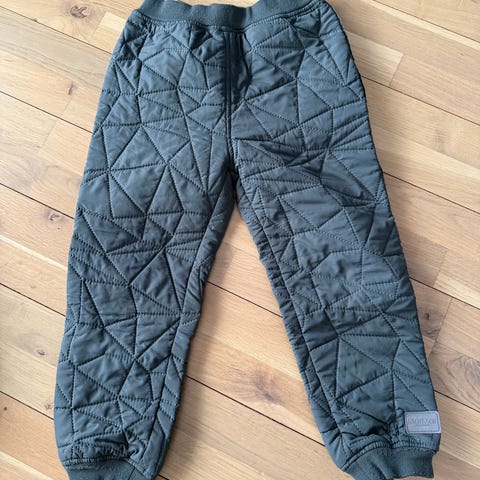 Marmar termobukser. Farve: grøn. Fin stand, men har et lille “riv” i det yderste stoflag (se billede 2).