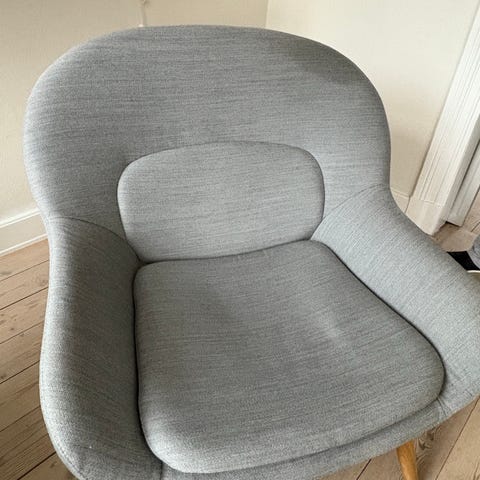 Visti stol sælges - lille plet som nok godt kan komme af, har ikke forsøgt fjernet. Brugt i stuen som lænestol. Olieret eg armlæn. Skal hentes i Aarhus.
