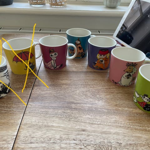 Arabia Moomin krus i porcelæn, designet til at fejre 80 års jubilæum. Kruset har en grøn og hvid farve med Moomin-motiv og er egnet til daglig brug. Helt ny med æsken til. Aldrig brugt.